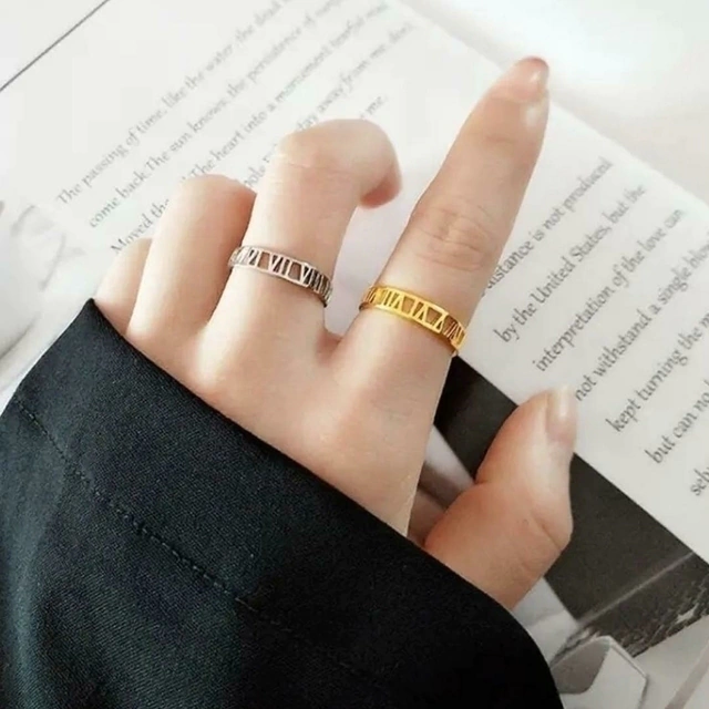 Anel Aço Inox Números Romanos Vazado Banhado a Ouro 18k