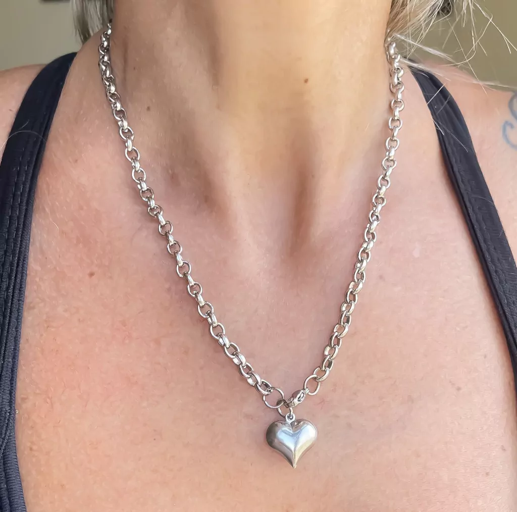 Colar com corrente de elo portugues de 6mm, com pingente de coração
