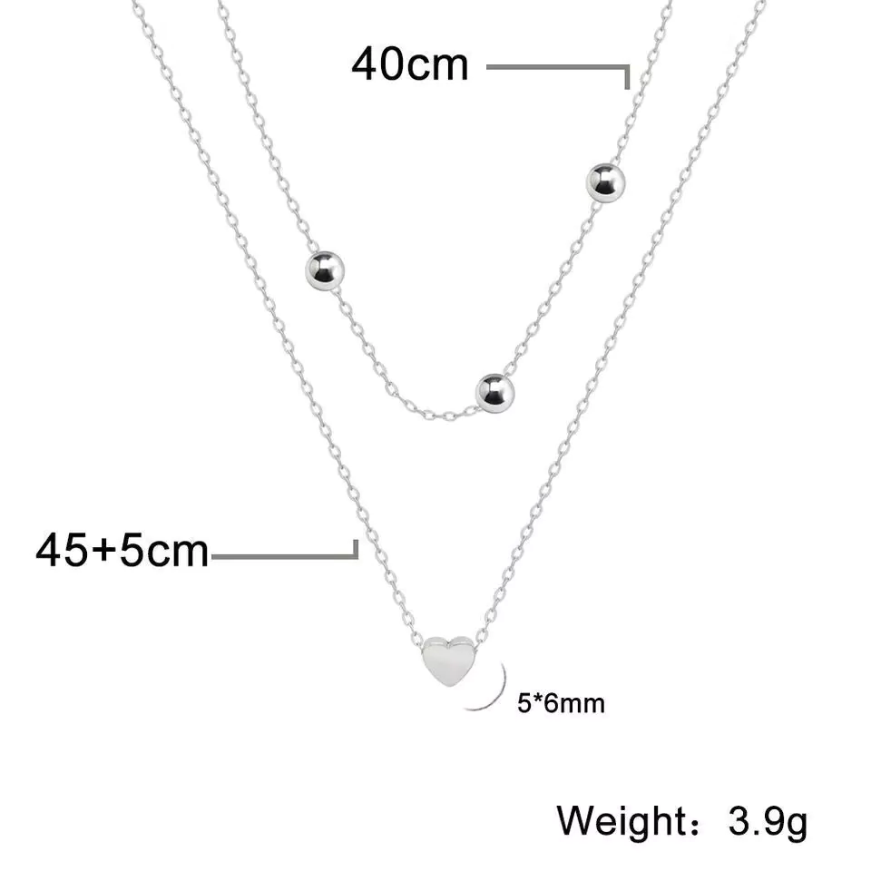 Colar duplo esfera e mini coração aço inox
