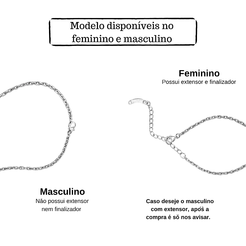 Pulseira feminino: 16cm + 3cm de extensor.
